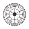 Red and nickel modern pendulum wall clock in aluminum and acrylic with an attached brake disc dial. Features an 8 day time only skeleton movement.